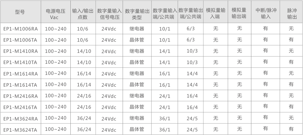 EP1系列是一款微型高性能通用型PLC,其結(jié)構(gòu)小巧,功能強(qiáng)大,具有數(shù)據(jù)處理、模擬量處理、網(wǎng)絡(luò)通信功能,高速計(jì)數(shù)和脈沖輸出定位控制功能,還具有浮點(diǎn)運(yùn)算和寫EEPROM指令高級(jí)功能。