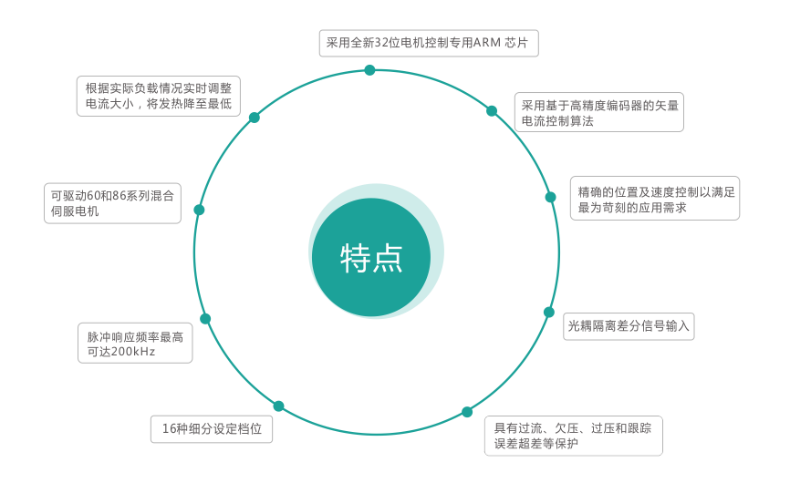 CS100-S708AH是一款新型混合步進(jìn)伺服驅(qū)動(dòng)器,采用最新專用電機(jī)控制ARM芯片和矢量型閉環(huán)控制技術(shù),從而徹底克服開(kāi)環(huán)步進(jìn)電機(jī)丟步的問(wèn)題,同時(shí)也能明顯提升電機(jī)的高速性能、降低電機(jī)的發(fā)熱程度和減小電機(jī)的振動(dòng),從而提升機(jī)器的加工速度和精度以及降低機(jī)器的能耗。此外,在電機(jī)連續(xù)過(guò)載時(shí),驅(qū)動(dòng)器會(huì)輸出報(bào)警信號(hào),具有與交流伺服系統(tǒng)同樣的可靠性。電機(jī)安裝尺寸兼容傳統(tǒng)的60和86系列步進(jìn)電機(jī),無(wú)縫替換現(xiàn)有開(kāi)環(huán)步進(jìn)系統(tǒng)或其他閉環(huán)步進(jìn)驅(qū)動(dòng)器。