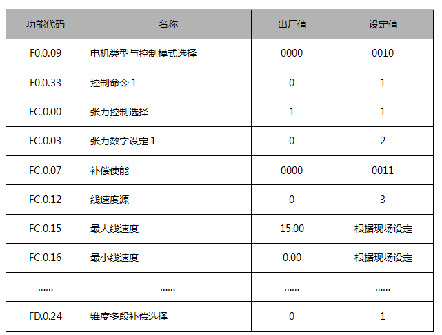 收卷變頻器主要參數(shù)設(shè)置表
