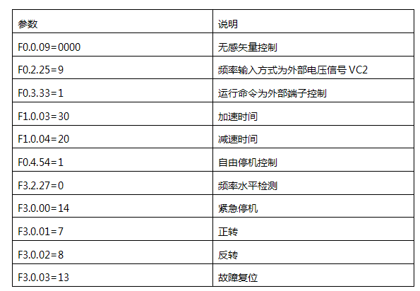 為發(fā)揮矢量變頻器的電機(jī)控制特性,請對(duì)電機(jī)進(jìn)行參數(shù)自測定,自測定完成之后,可參考如下參數(shù)進(jìn)行設(shè)置: