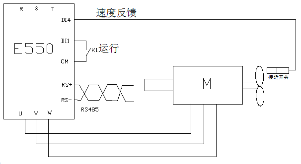 高速倍捻機(jī)對(duì)轉(zhuǎn)速精度要求比較高,一般要求在不同的轉(zhuǎn)速時(shí)誤差±10r/min以內(nèi)。通過高速接近開關(guān)作為速度反饋信號(hào),接入E550變頻器的高速脈沖輸入端子,組成速度閉環(huán)的方式,轉(zhuǎn)速精度誤差±10r/min,完全滿足現(xiàn)場(chǎng)工藝要求。通過專用的速度修正系數(shù),還可以對(duì)轉(zhuǎn)速進(jìn)行手動(dòng)微調(diào),進(jìn)一步提高轉(zhuǎn)速精度。
