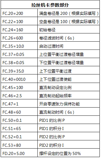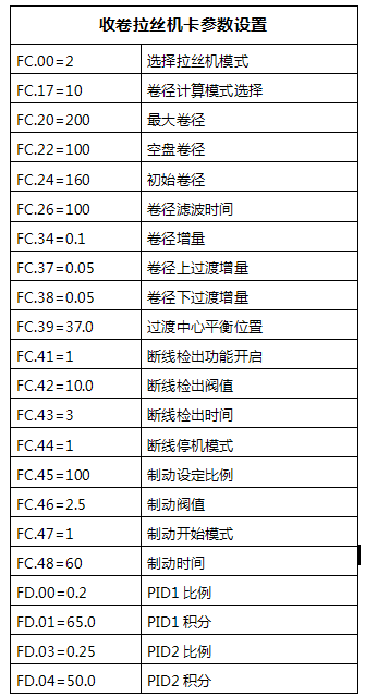 在雙變頻拉絲機擴展卡安裝好約3分鐘之后設(shè)置收卷參數(shù):