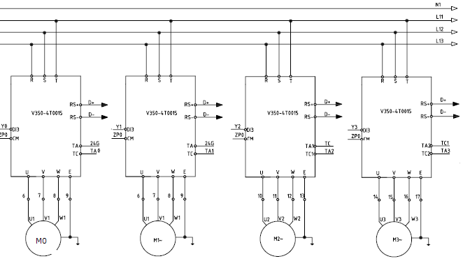 (1)用外部端子給定的方式運行變頻器,能精確控制主輸送帶變頻器運行時刻,如果用通信的方式運行變頻器,MODBUS通信可能存在干擾,從而影響分袋子的間距。