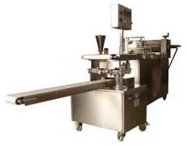 酥餅機(jī)(圖1)是食品機(jī)械中的一種,它由一道搟面加餡主機(jī)、捏花成型機(jī)兩臺配套單機(jī)組成。與一般的酥餅機(jī)相比,該機(jī)器主機(jī)整合了搟面機(jī)與加餡機(jī),使整個(gè)工藝更方便流暢。以往的酥餅機(jī)產(chǎn)量低,人工成本高,而且還存在著比較高的消耗,而采用變頻無級調(diào)速裝置可以實(shí)現(xiàn)皮和餡的任意配比,大大的降低了人工需求,并有效的控制了生產(chǎn)中的消耗。