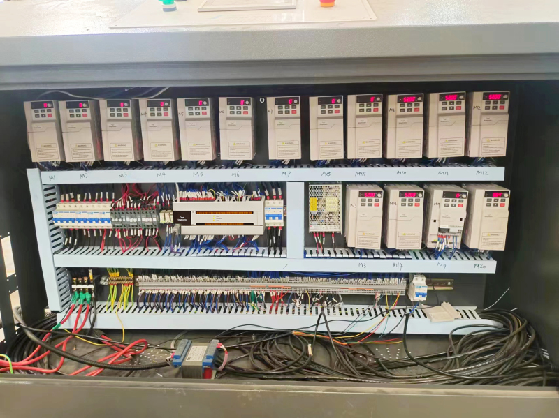 系統(tǒng)通過HMI設(shè)置進(jìn)給位移量,PLC負(fù)責(zé)伺服位置脈沖信號(hào)的發(fā)送及系統(tǒng)其它控制信號(hào)的轉(zhuǎn)換和傳遞,CA100驅(qū)動(dòng)合片吸盤架高速行走。CA100快速的響應(yīng)性和優(yōu)異的控制性能,保證了吸盤架電機(jī)可以精確快速定位到材料工位,確保每段工位之間的速度平穩(wěn)過渡,精準(zhǔn)運(yùn)行。還可以根據(jù)實(shí)際工況,自動(dòng)調(diào)控各工序段速度,極大的提升了生產(chǎn)效率。