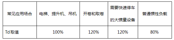 Td----制動(dòng)力矩與電機(jī)額定力矩的比值
