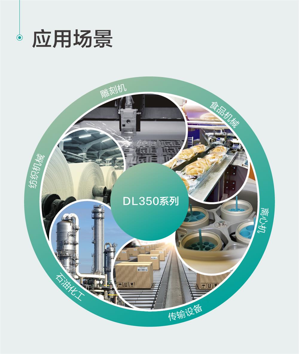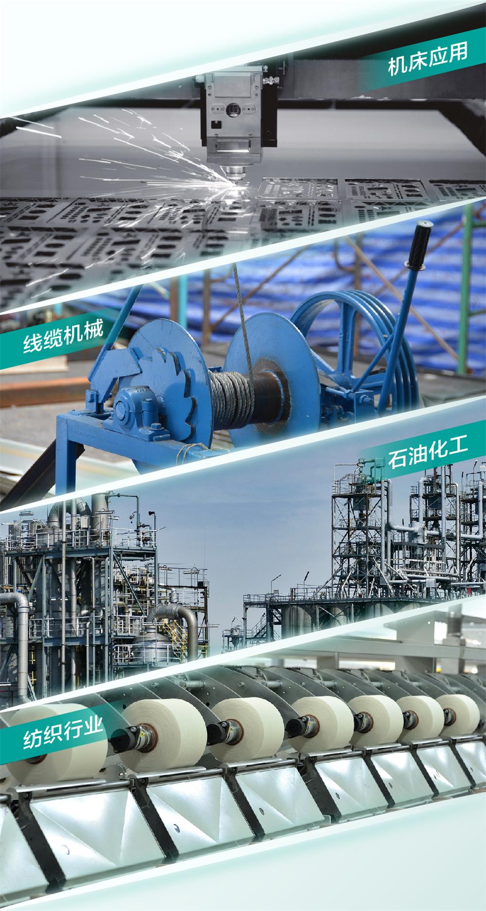 機(jī)床應(yīng)用、線纜機(jī)械、石油化工、紡織行業(yè)、食品包裝、洗脫設(shè)備、離心機(jī)等。