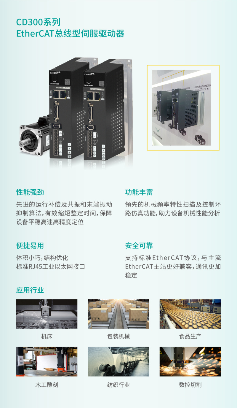 下半年,公司推出備受期待的CD300系列EtherCAT總線型伺服驅(qū)動(dòng)器,這是四方電氣在通用型中小功率交流伺服驅(qū)動(dòng)器領(lǐng)域的又一重要成果。