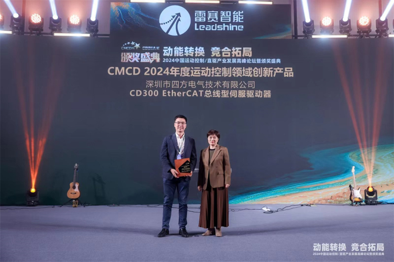 四方電氣CD300系列EtherCAT總線型伺服驅(qū)動(dòng)器憑借優(yōu)異的控制性能,榮獲“CMCD 2024年度運(yùn)動(dòng)控制領(lǐng)域創(chuàng)新產(chǎn)品獎(jiǎng)”。